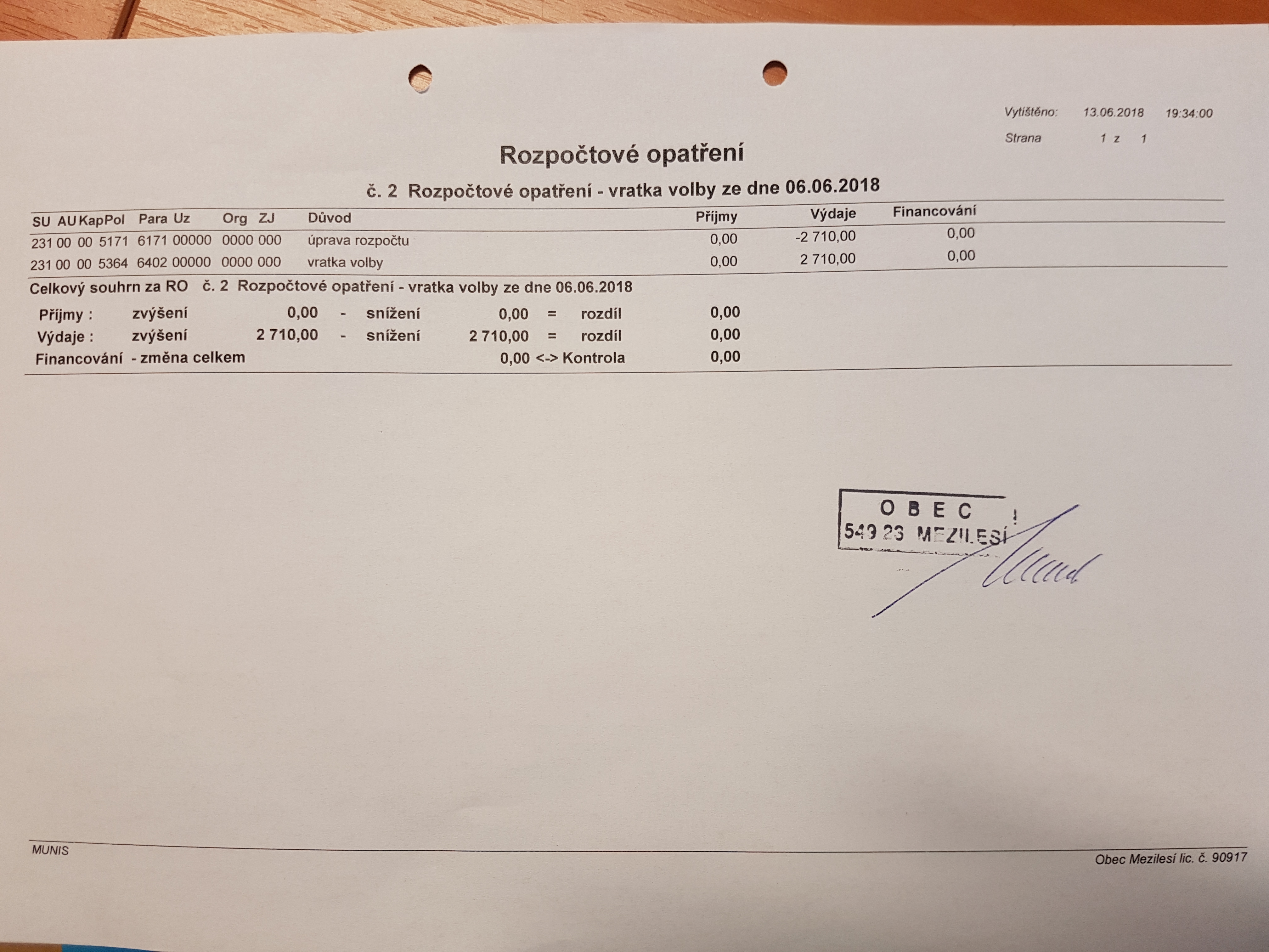 Rozpočtové opatření č.2
