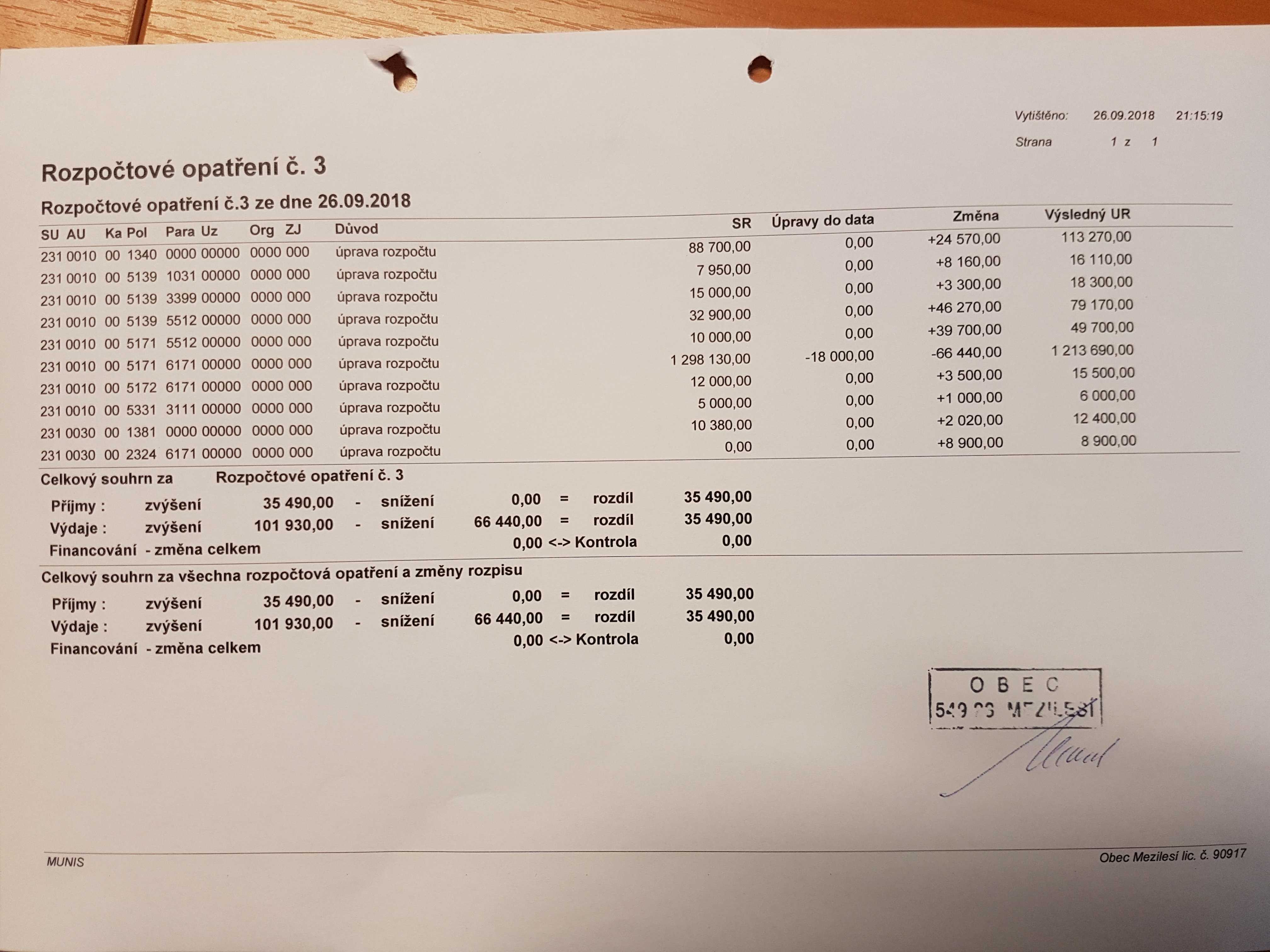 Rozpočtové opatření č.3