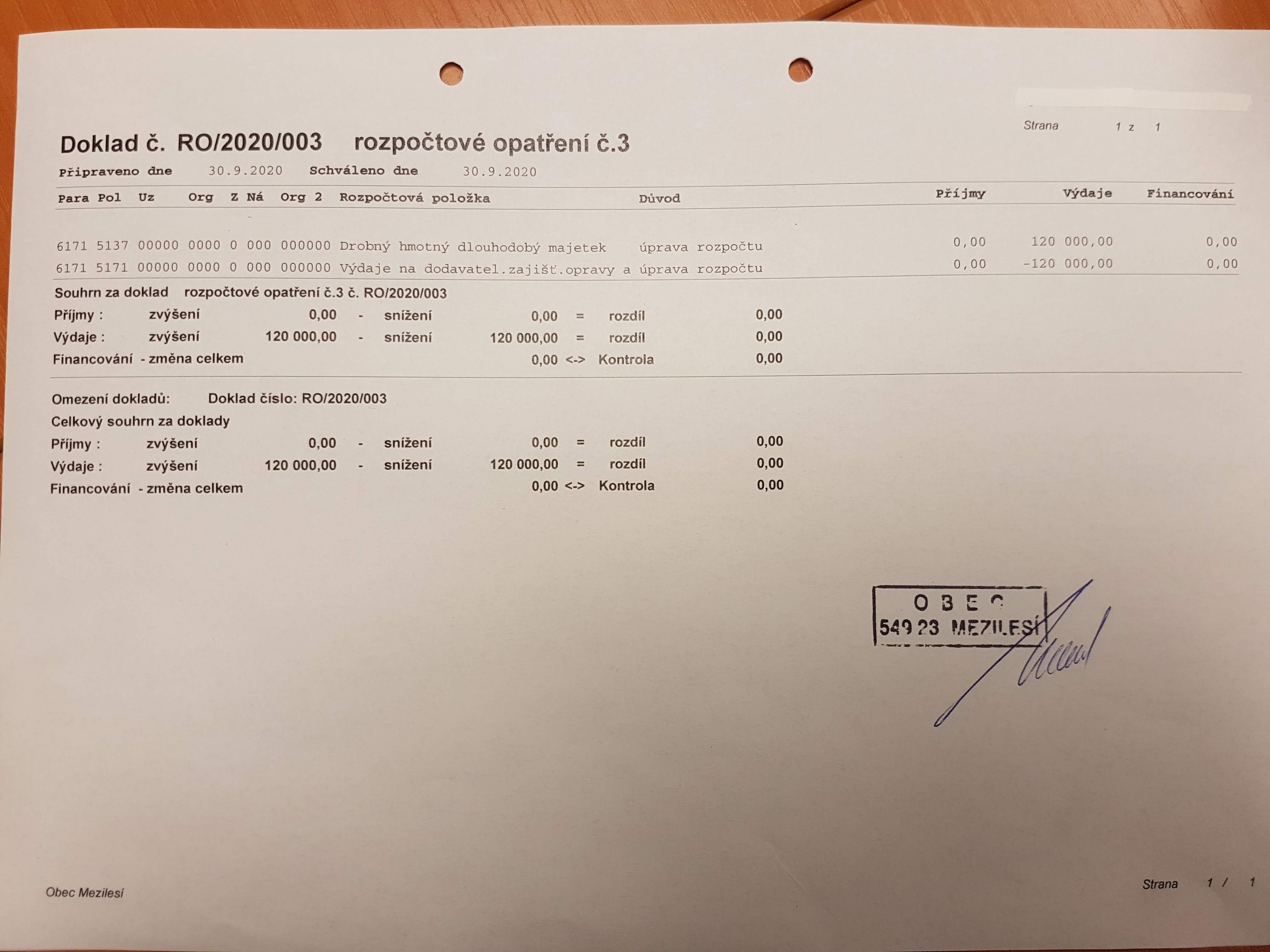 Seznam přijatých nabídek, akce: Stavební úpravy budovy obecního úřadu č.p.95 Mezilesí