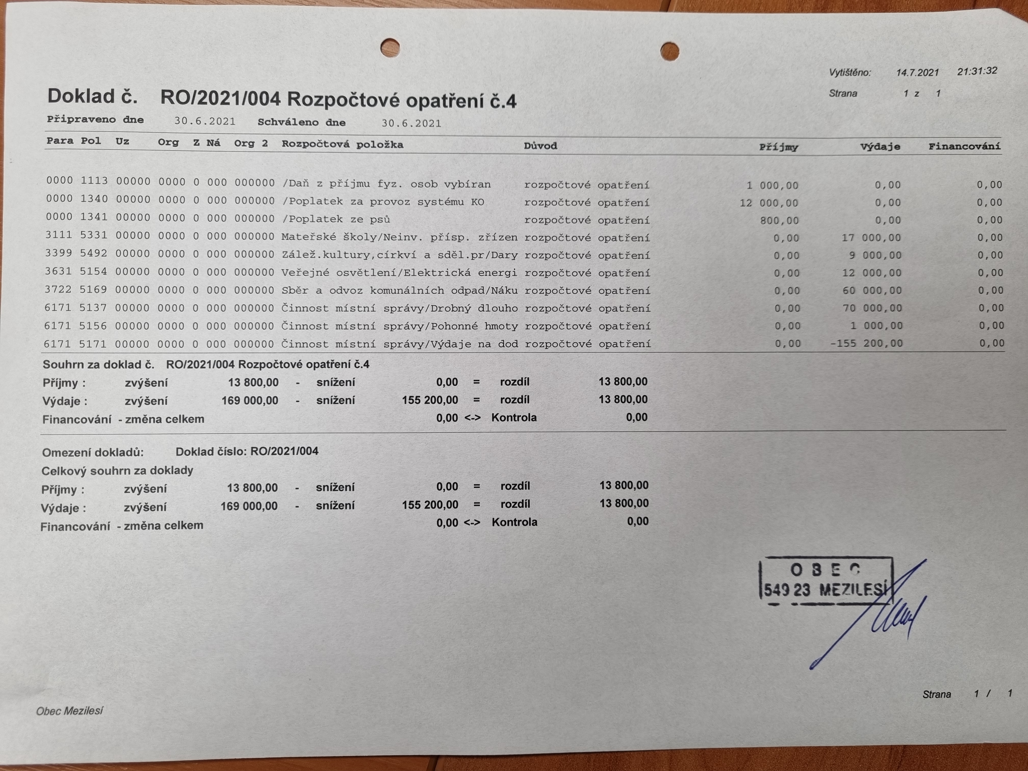 Rozpočtové opatření 4_2021